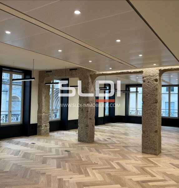 Bureaux d'exception à louer Lyon 2e - Presqu'île - 169 m² Au coeur de la Presqu'île de Lyon, dans le prestigieux 2e arrondissement, découvrez un plateau de bureaux de 169 m² non divisibles à louer. Idéalement situé, cet espace lumineux bénéficie d'une hauteur sous plafond de 3 mètres et d'un éclairage naturel optimal. Ses prestations haut de gamme sauront séduire les entreprises exigeantes : parquet ancien, belles moulures, climatisation réversible, plateau livré paysagé. Les parties communes ont été entièrement réhabilitées pour un standing irréprochable. Une opportunité rare sur le marché lyonnais ! 1 place de parking en surface disponible en supplément, à proximité immédiate. Parfait pour une société en quête d'adresse premium au centre de Lyon.