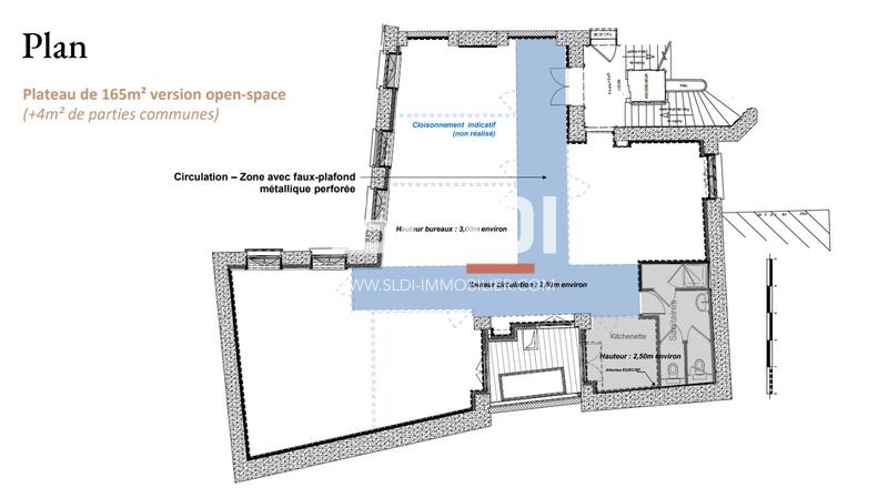 Hauteur sous plafond à environ 3m et 100% des bureaux en premier jour, Prestations haut de gamme : parquet, moulures, climatisation réversible., Parties communes entièrement réhabilitées , Plateau livré paysagé