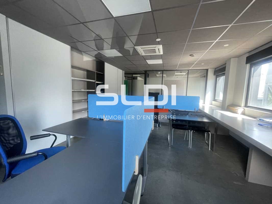 Bureaux à louer à Vaulx-en-Velin, offrant 79 m² divisibles à partir de 16 m². Ces espaces modernes et fonctionnels bénéficient d'un accueil avec assistante pour la gestion du courrier et des colis, de menuiseries en alu et de stores, d'un sol en béton ciré, d'une climatisation réversible, d'une salle de réunion à réserver, d'un coin cuisine, le tout situé dans une zone ZFU dynamique. Parfait pour les entreprises à la recherche d'un environnement professionnel et agréable pour leurs activités.