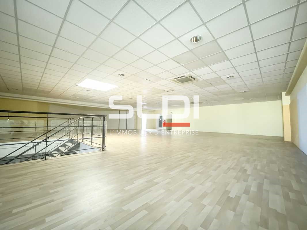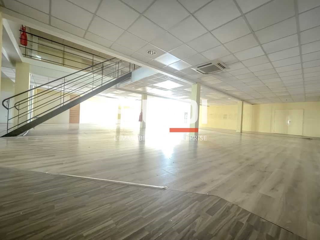 Prestations : , Reserve à l'arrière avec quai de déchargement et rideau métallique , Accès mezzanine avec escaliers ou ascenseurs PMR , RDC : , HSP 2.93m , Sanitaire avec point d'eau , Parquet au sol, Eclairage LED, Climatisation réversible chaud/froid , Mezzanine : , HSP 2.73m, Parquet au sol , 1 bureau , 2 fenêtres PVC, Eclairage au néon , sans climatisation , Réserve , Surface RDC : 550 m²