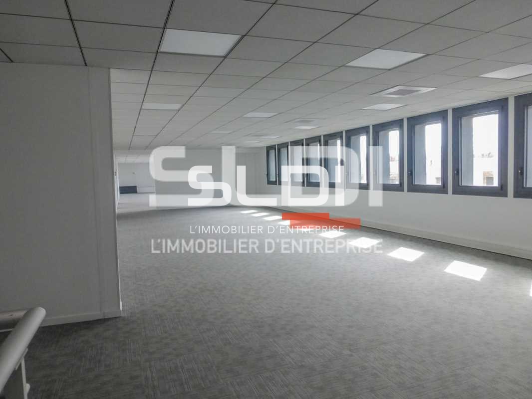 Espace extérieur , Faux plafond, Plinthes périphériques, Moquette, Surface RDC : 682 m², Haut. libre max. ss poutre : 6 m, Ossature : Béton, Murs périmétriques : Bardage double peau, Couverture : Bac acier
